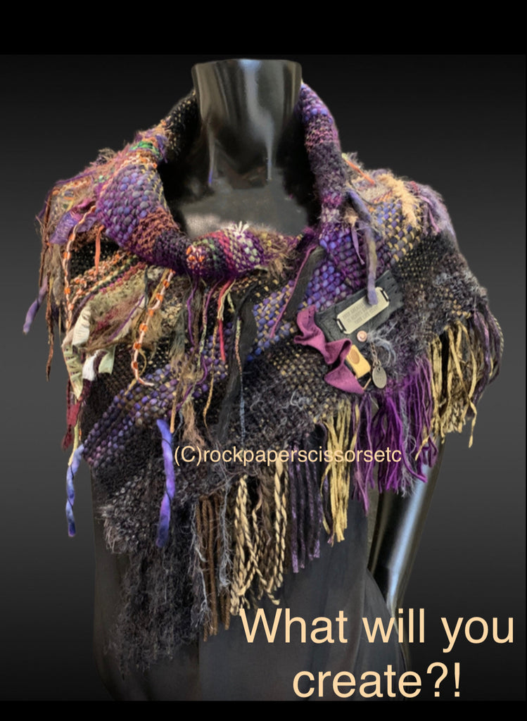 Great for weaving! I use a two ply blend (with a other consistent fiber) in most of my pieces. Pull fringe to one face as you weave or knit. These blends make for a great weavers kit for clothing and scarves. Knitting accessories with a multi-strand blend of the thinner fibers will make a great piece, and add a multi-fiber fringe to the ends and edges.