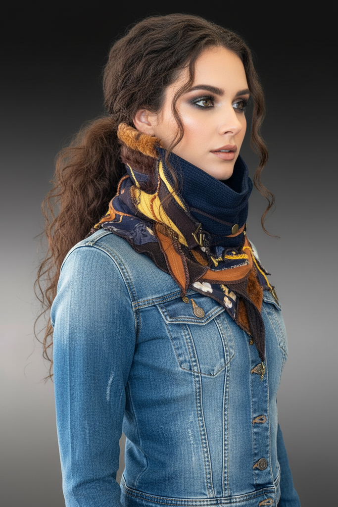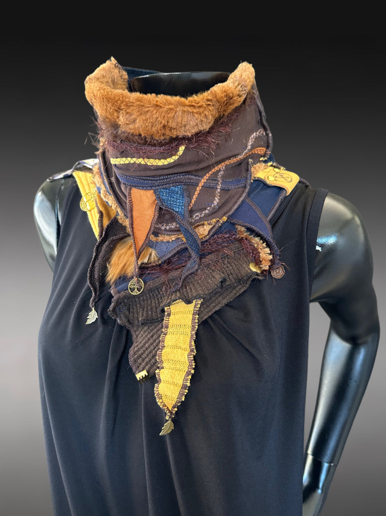 This one-of-a-kind artisan cowl is a sculptural, wearable statement piece designed for warmth, versatility, and expressive style. Handcrafted using layered textiles, this reversible cowl offers two distinct looks in one, allowing you to change your aesthetic with a simple flip.