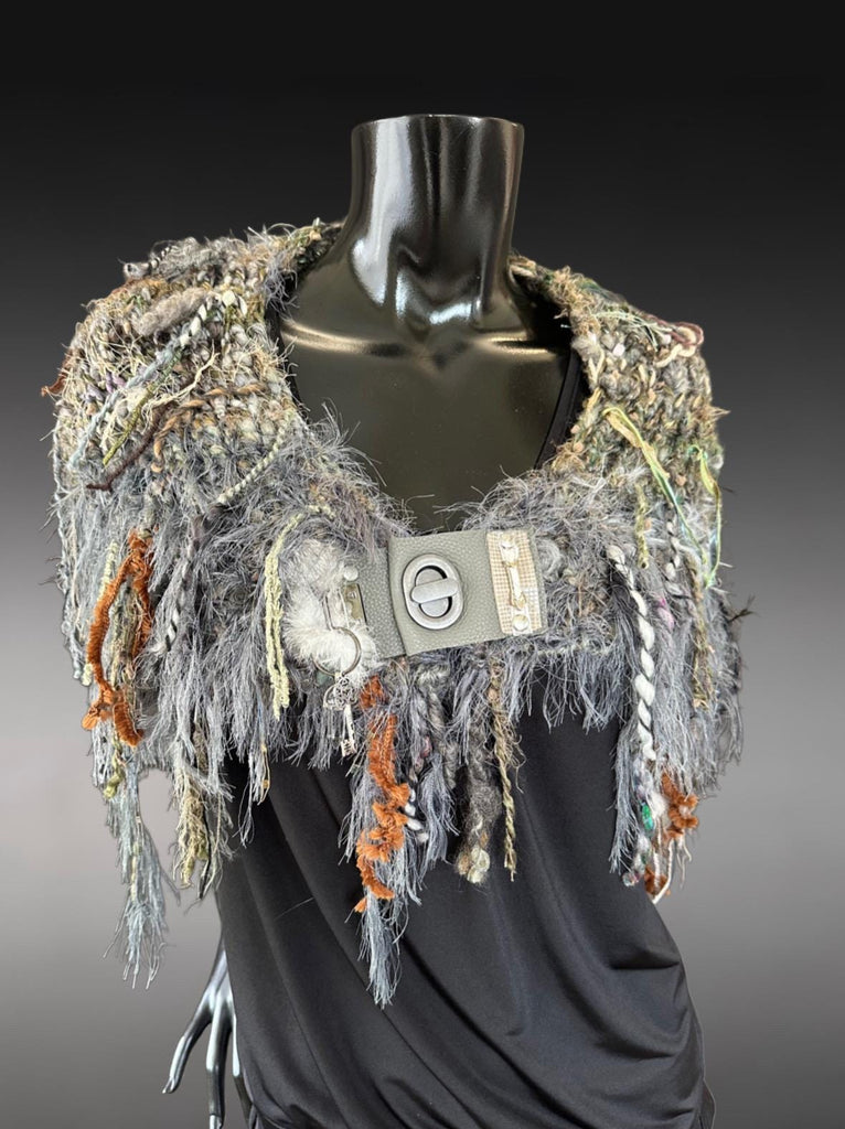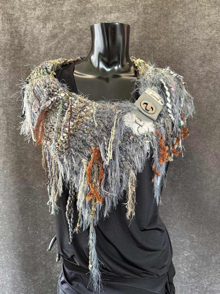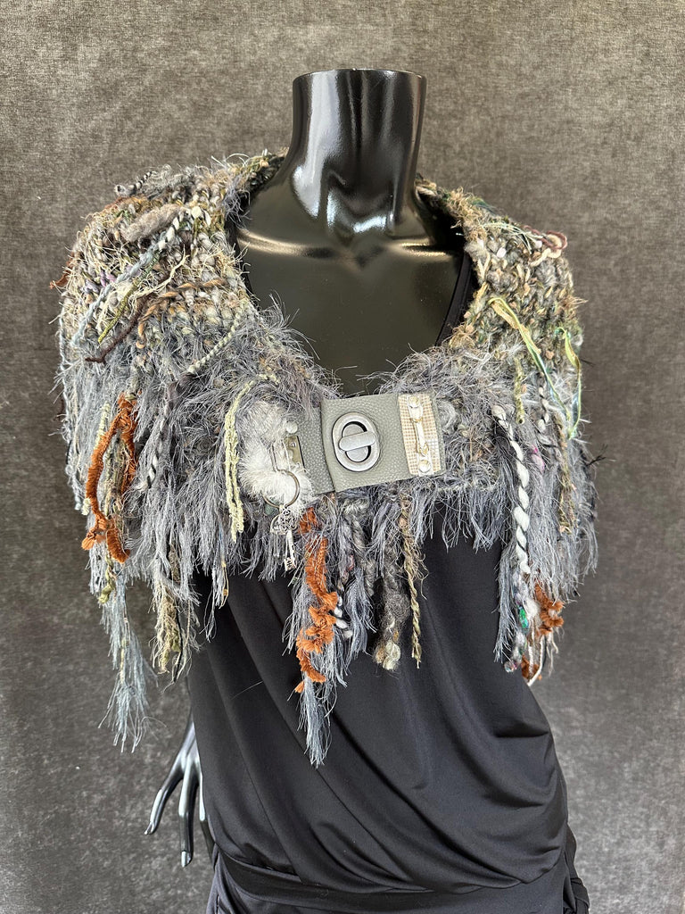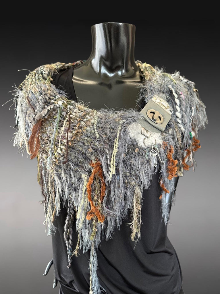 Luxury knit artisan bohemian fringe cowl with clasp, woodland elf fashion, nature inspired