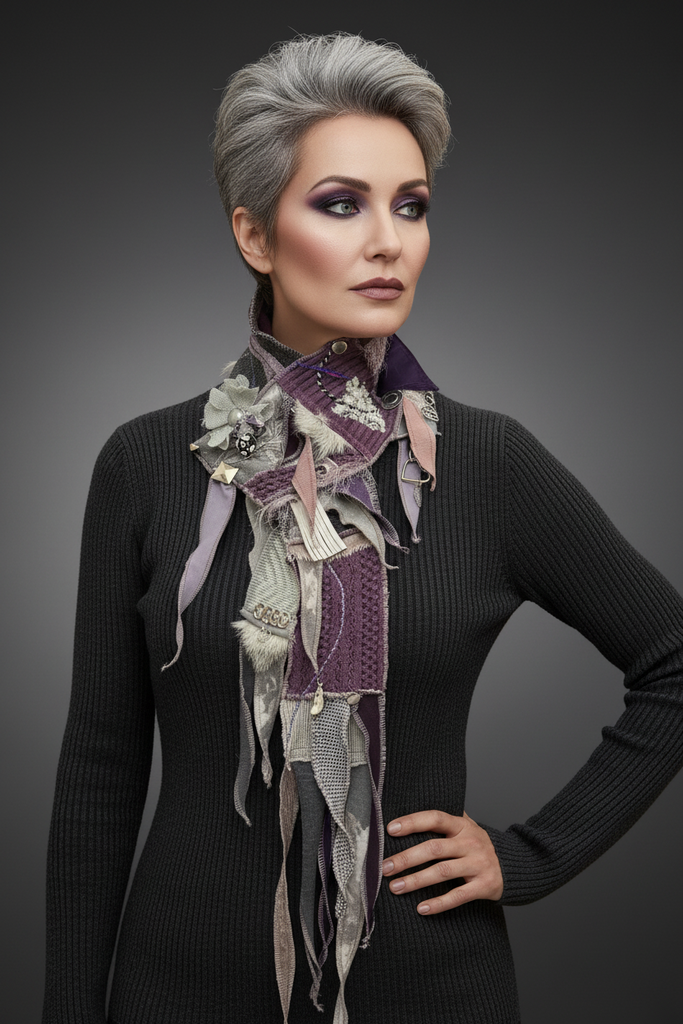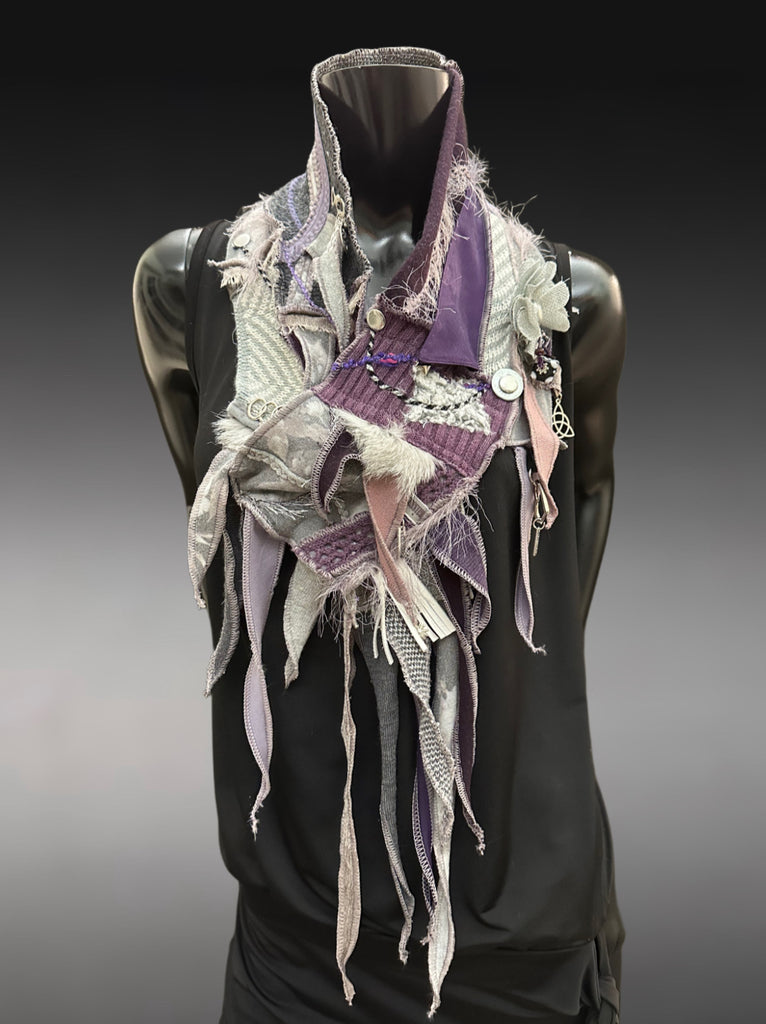 Unleash your inner elfin fairy with avant garde style fashion– a whimsical handmade statement scarf that doubles as wearable textile art.