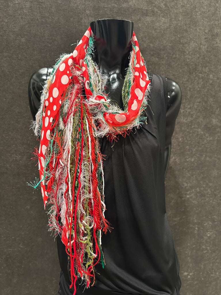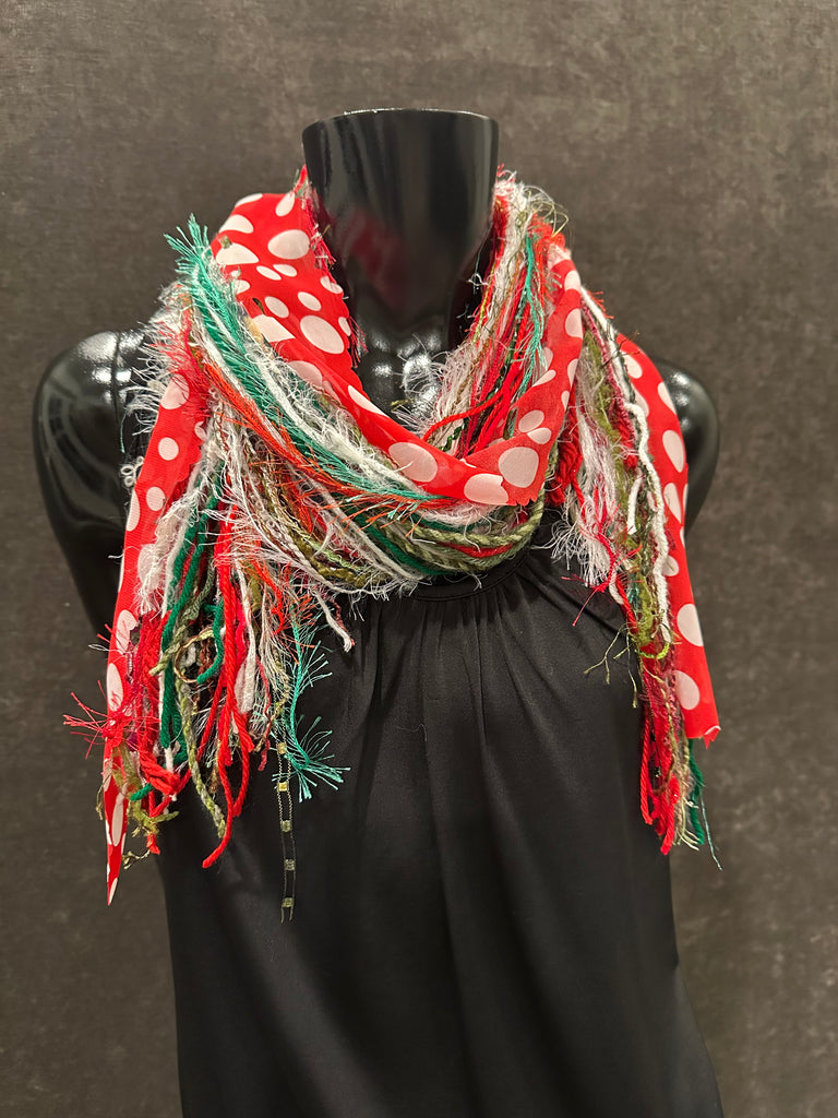 Christmas color Grinch scarf with ribbons, ugly sweater, polka dot scarf