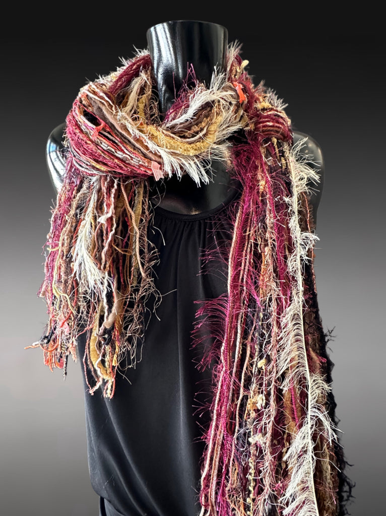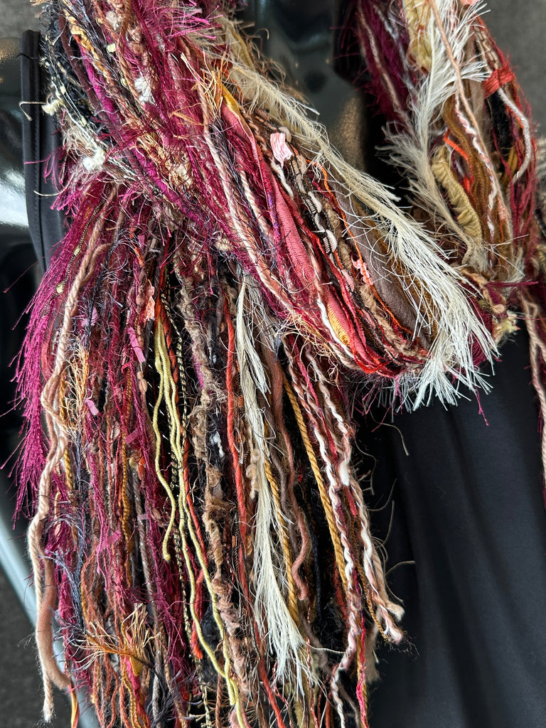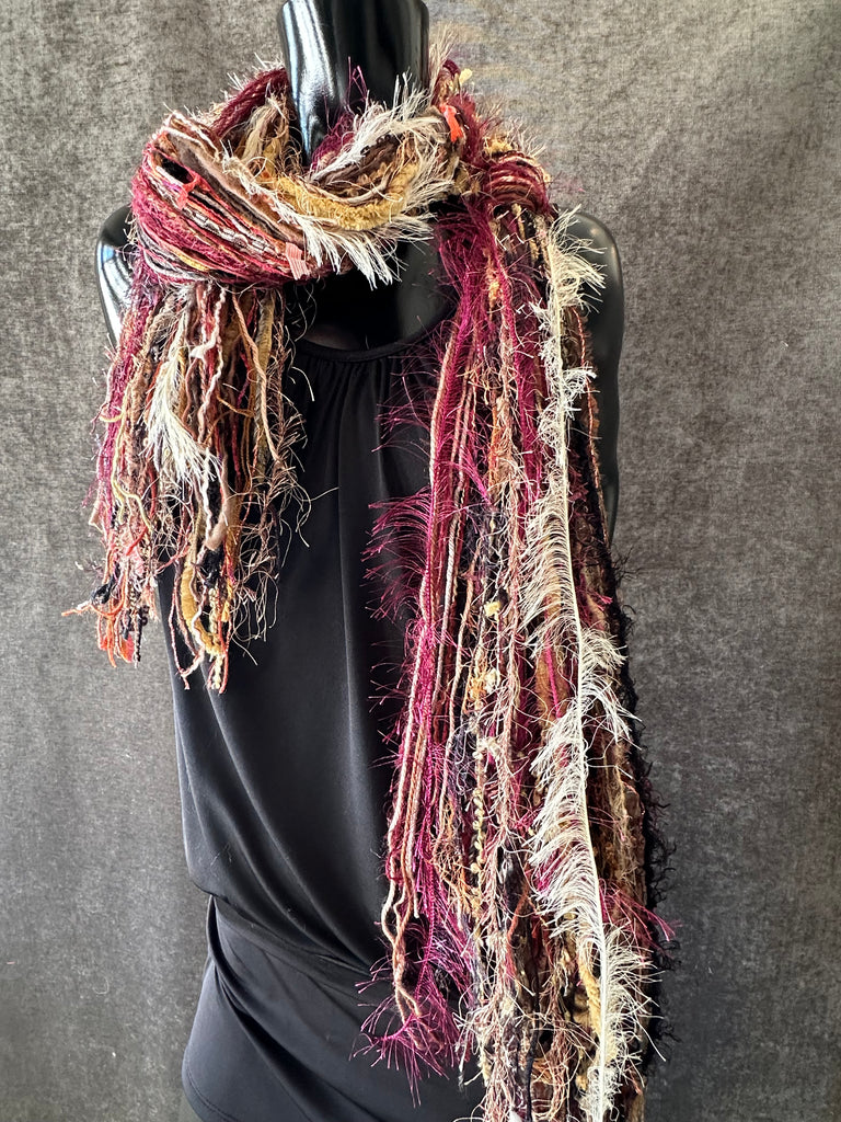 Handmade funky Bohemian Fringie art yarn scarf by rockpaperscissorsetc>