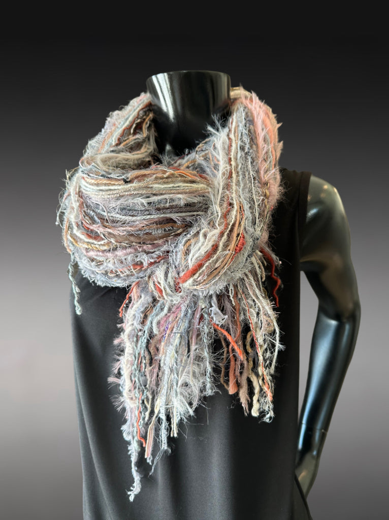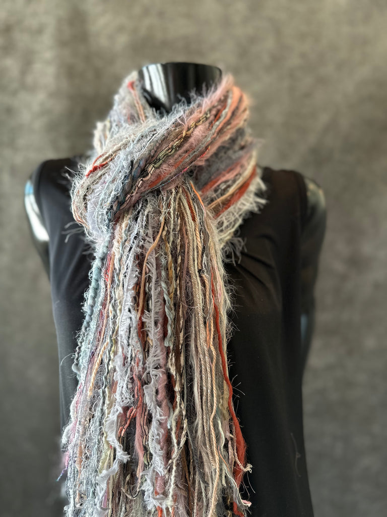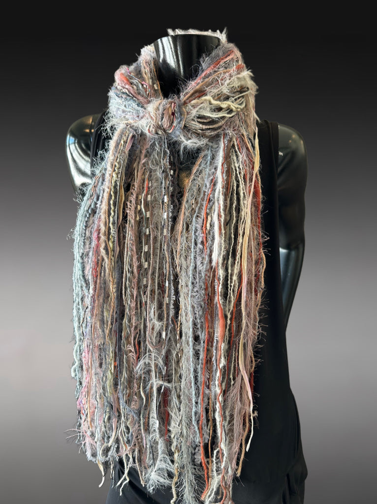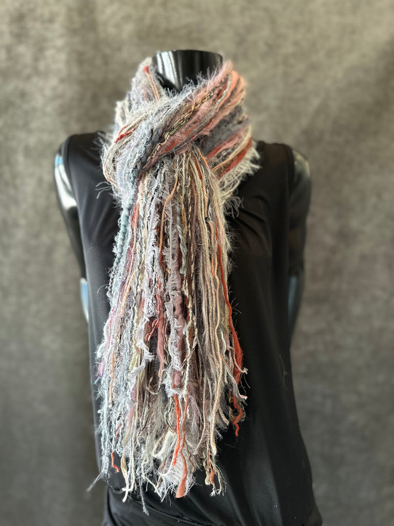 Handmade funky Bohemian Fringie art yarn scarf by rockpaperscissorsetc>