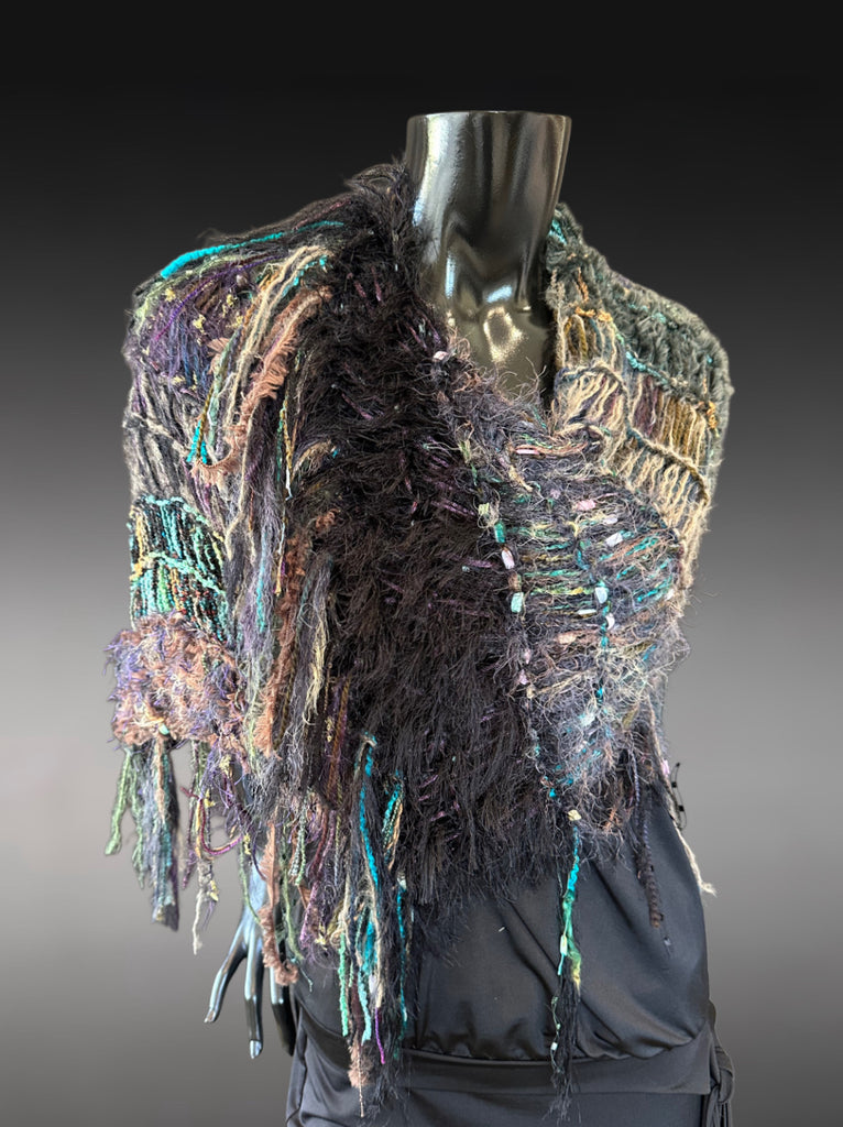 It’s a definite stand-out-in-the-crowd piece!! Because the materials are hand-tied from my own custom skeins with materials from all over the world, you have a one of a kind piece!!