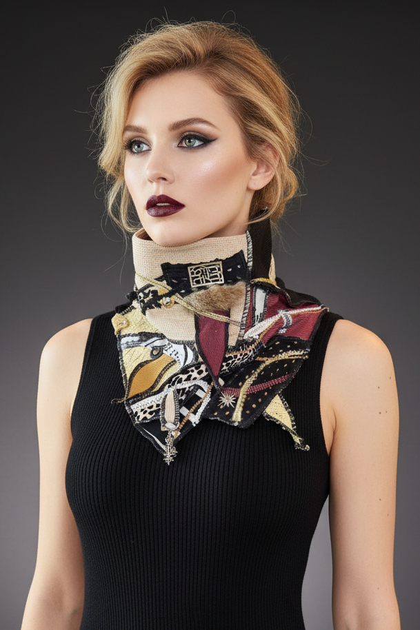 Upcycled eco couture fabric neck cowl scarf, street style fashion boho neckwarmer