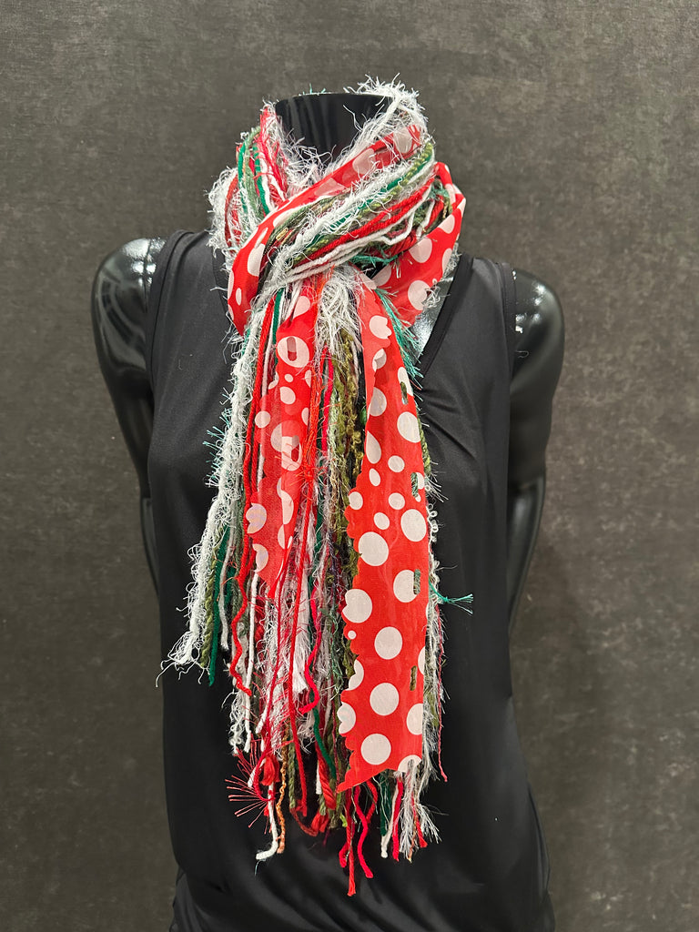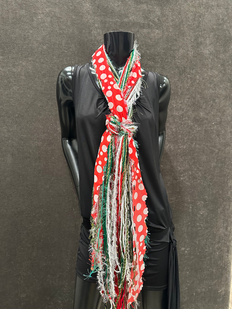Christmas Scarf, Grinch Fringie, Christmas color red, green red and white with polka dots and lime green, fashion scarf for Christmas, dots